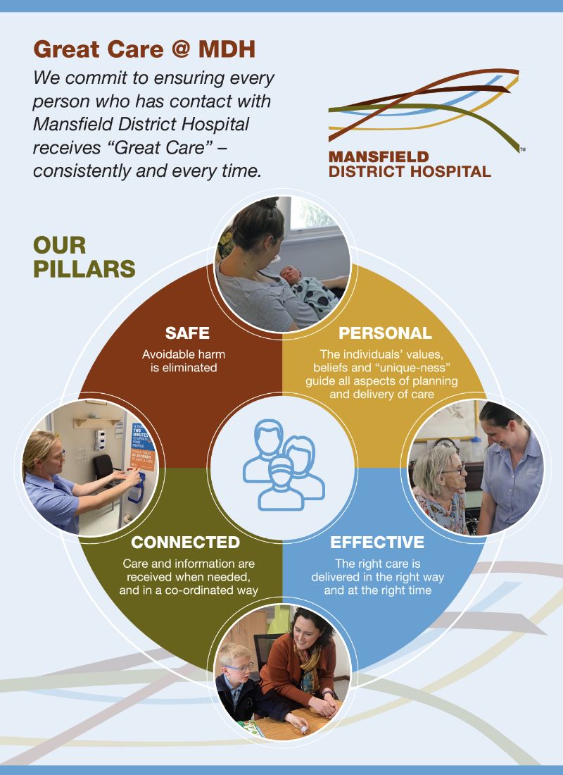 We work as a cohesive team and feel connected to the work we do together. We maintain strong connections to our diverse communities in and outside of Mansfield. We work in collaboration with our partners to deliver exceptional care. We have honest and open conversations with our staff, consumers and the community.